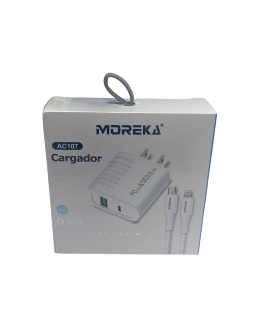 Combo cargador USB y C a lightning ac107 40w moreka