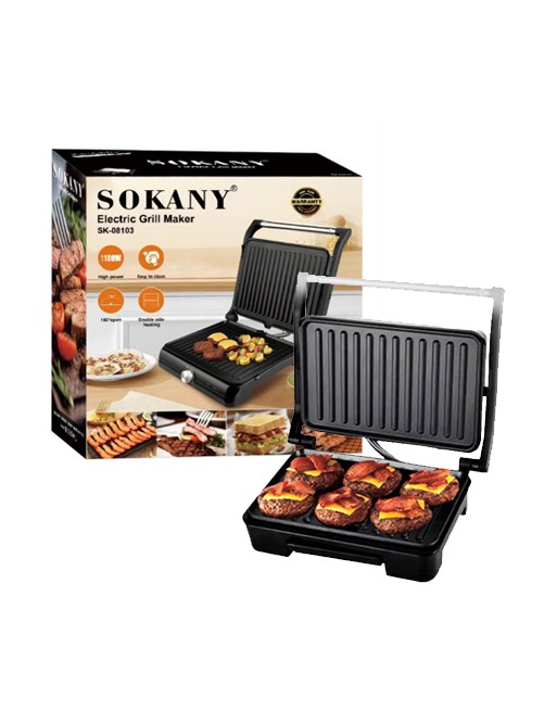 Parrilla electrica con perilla de temperatura ajustable, 1100w calefacción doble y teflón sk-08103 sokany