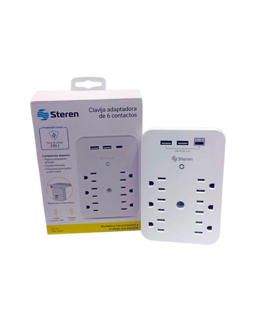 Clavija adaptadora de 6 contactos protección contra picos de voltaje