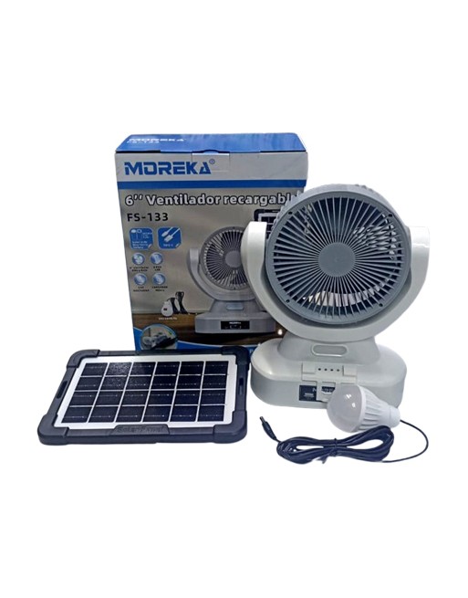 Ventilador recargable con panel solar y directo a luz de 6" fs-133 moreka