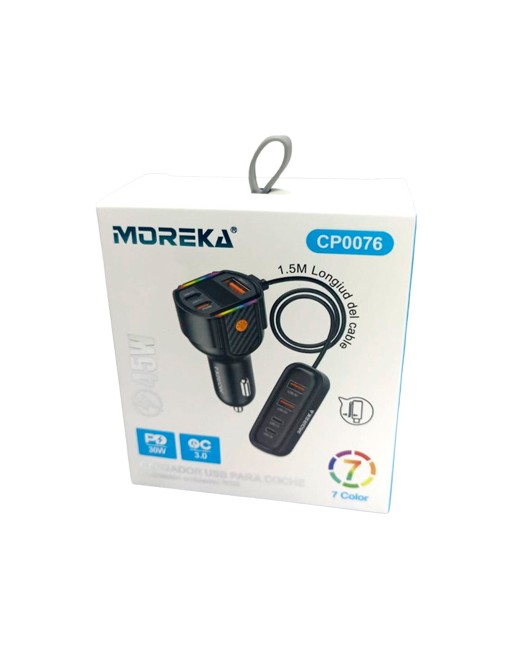 Cargador multipuertos para coche 45w usb y tipo c moreka cp0076