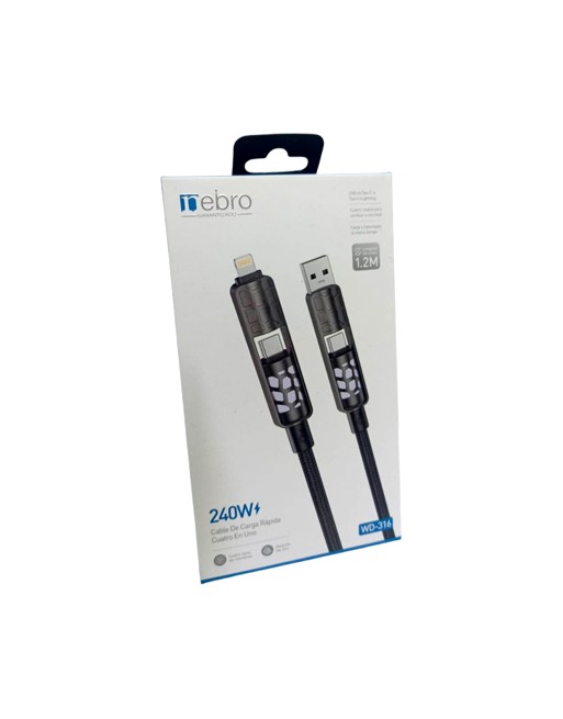 Cable 4 en 1 carga rapida 240w 1.2 metros wd-316 nebro